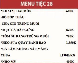 MENU TIỆC SET 28: