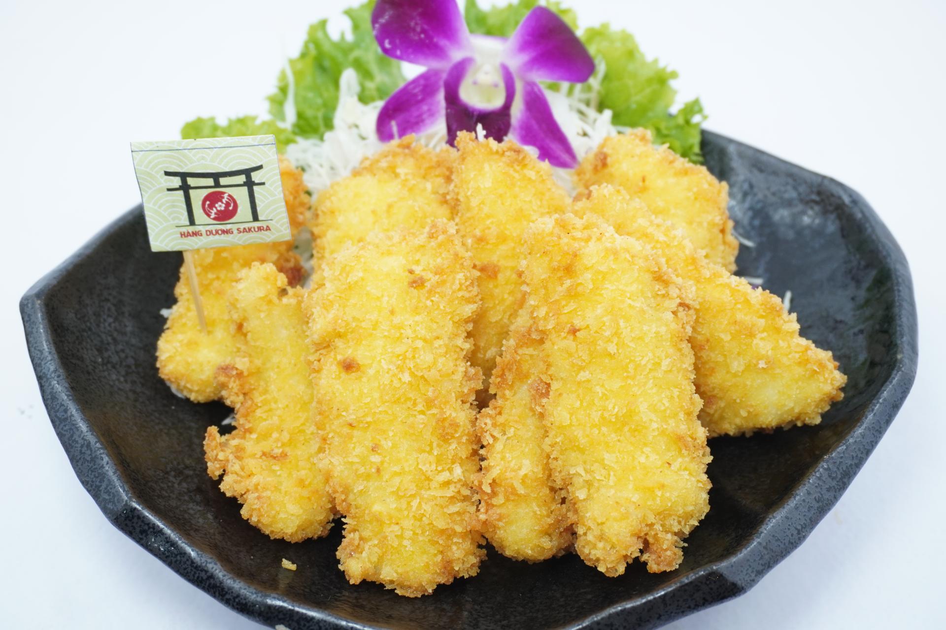 Mực Chiên Xù tại Hàng Dương Sakura được chế biến từ những con mực tươi ngon, thịt mực dai ngọt, sau đó được phủ lớp bột chiên xù giòn rụm. Món ăn khi được chiên lên sẽ có lớp vỏ giòn tan nhưng vẫn giữ nguyên được độ mềm mại bên trong, tạo nên sự kết hợp hoàn hảo giữa độ giòn, vị ngọt tự nhiên của mực và hương thơm đặc trưng. Đặc biệt, món ăn còn được phục vụ kèm với nước chấm độc đáo, làm tăng thêm sự hấp dẫn và đậm đà cho mỗi miếng mực.